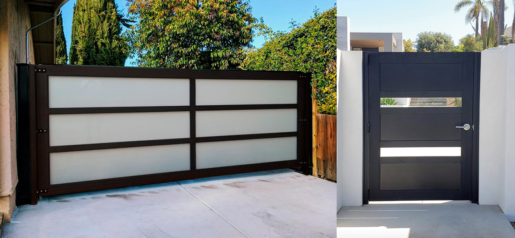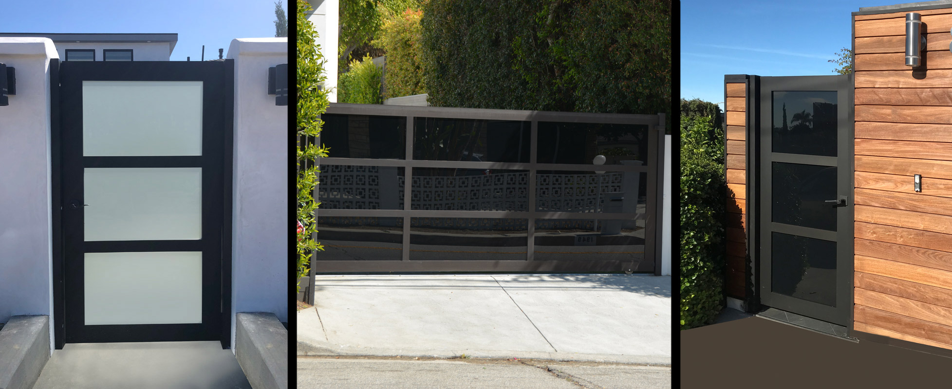 The EL110 Aluminum Glass Gates enhance contemporary homes with their distinctive, modern appeal. Designed with crisp lines and a sleek architecture, these gates incorporate durable, corrosion-resistant aluminum frames and light-filtering glass, providing a sophisticated complement to any property. The standard frame of the EL110 features a narrow width and offers a variety of finishes and customizable door size options, making it versatile for different design preferences.